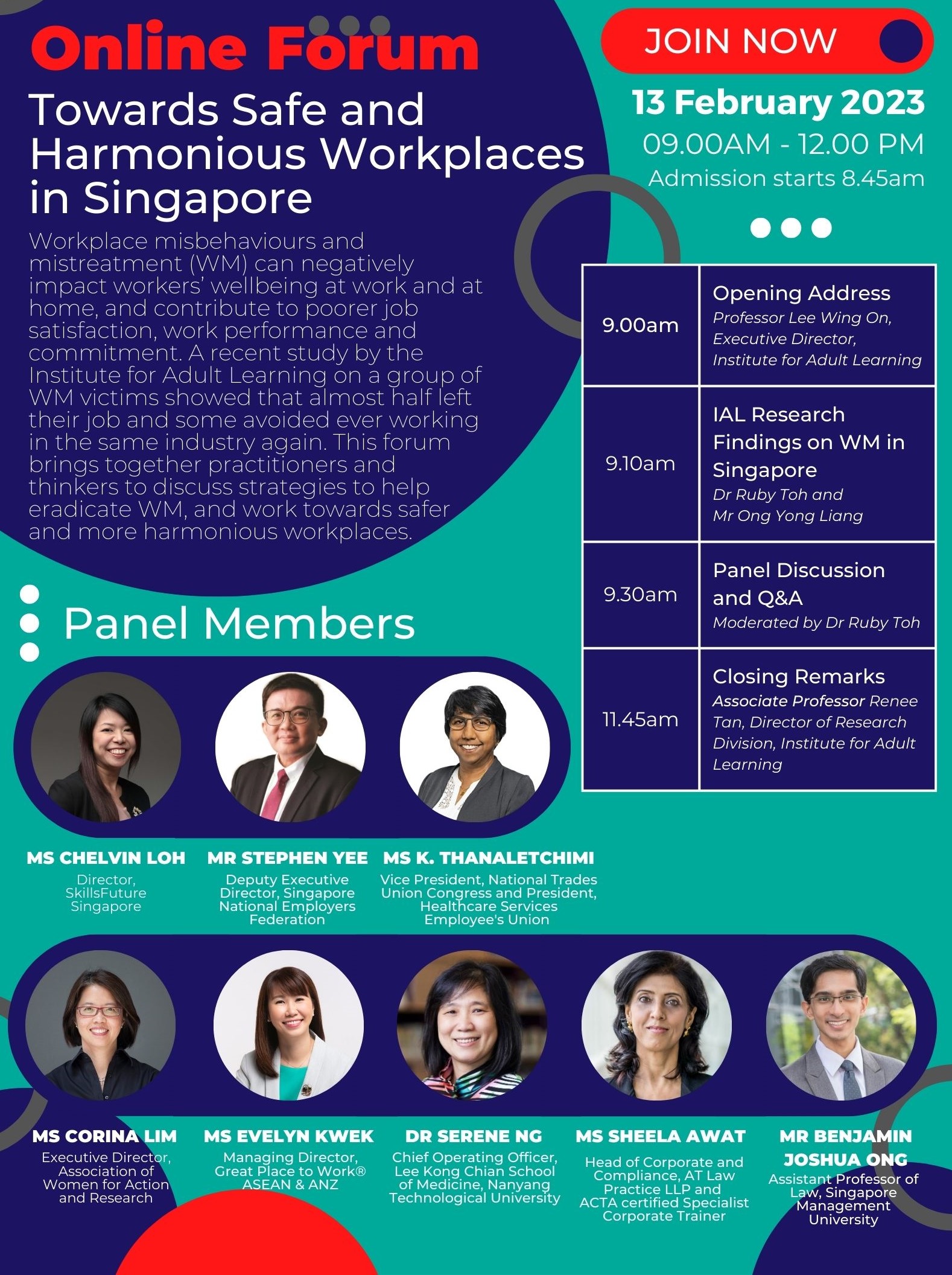 An online forum was held on 13 Feb 2023 to share findings from the study. It also brings together practitioners and workers to discuss strategies to help eradicate WM, and work towards safer and more harmonious workplaces.