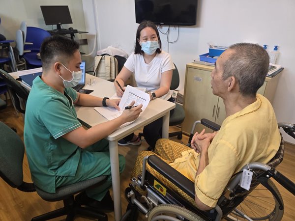 Interview conducted by Nudgyt Pte. Ltd. with an elderly individual, assisted by a KWSH nurse.